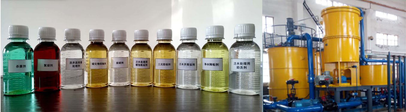 針對油田的實際情況,公司開發(fā)油田水處理助劑共10余種。產(chǎn)品主要包括:殺菌劑系列產(chǎn)品三項、絮凝劑、洗井返排液處理劑、硫化物抑制劑、脫硫劑、注水處理用緩蝕阻垢劑、三元防垢劑、除垢劑、凈水降粘劑、注水處理用助洗劑等產(chǎn)品,目前廣泛應用在大慶油田。