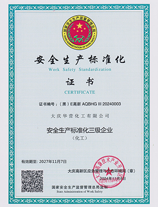 大慶華營化工有限公司成立于2006年7月10日,注冊資金3300萬元,公司類型為有限責任公司。位于大慶高新技術產(chǎn)業(yè)開發(fā)區(qū)宏偉園區(qū),是一家集油田助劑產(chǎn)品的研發(fā)、生產(chǎn)、銷售和技術服務為一體的現(xiàn)代化高新技術企業(yè)。公司注重科技創(chuàng)新,公司擁有18項自主知識產(chǎn)權。企業(yè)承擔過國家火炬計劃重點項目、國家科技型中小企業(yè)創(chuàng)新項目等,2011年被科技部火炬高新技術產(chǎn)業(yè)開發(fā)中心評為國家火炬計劃重點高新技術企業(yè)。公司十余種產(chǎn)品獲得中國石油天然氣集團公司產(chǎn)品質(zhì)量認可證書,其中粘穩(wěn)型驅(qū)油劑獲國家火炬計劃重點項目證書。公司憑借多年對大慶油田及周邊油田地質(zhì)情況的研究,可針對各油田地層特點調(diào)整產(chǎn)品的配方,更好地發(fā)揮各類油田助劑的性能。